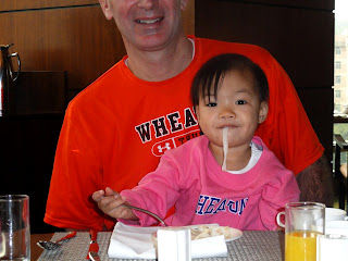 Today, as the title says, has been a quiet day. We slept late, ate breakfast late, and napped. In spite of all that lounging around, we found time to swim at the pool, shop for trinkets, walk around the neighborhood looking for a nonexistent park, and discover two new restaurants. In the process, we continue to get to know this beautiful girl God has placed in our lives. She loves strawberries and tea. She can slurp noodles like a pro. She is definitely most happy with Dad and around lots of activity. Todd is still baffled by her choice of favorites. In addition, Elsa loves playing games on my phone. What toddler doesn't, I guess. I'm just surprised that she knows her way around an iPhone already! She was able to show Mari how much she likes the pool today. While she took a nap, Todd took Annika shopping on the street. When Elsa woke up and Dad was gone, she was not a happy camper. She called for Baba and jie jie through her tears and only stopped crying when I put her shoes on and headed out the door with her on my hip. If you all could have seen her face when we found them, it would have brought a smile to your face. Too cute.